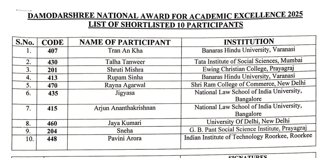 20 SEP 2025 Title : List of Shortlisted 10 Participants in DamodarShree National Award For Academic Excellence 2025 DamodarShree 2025 Click To Download |