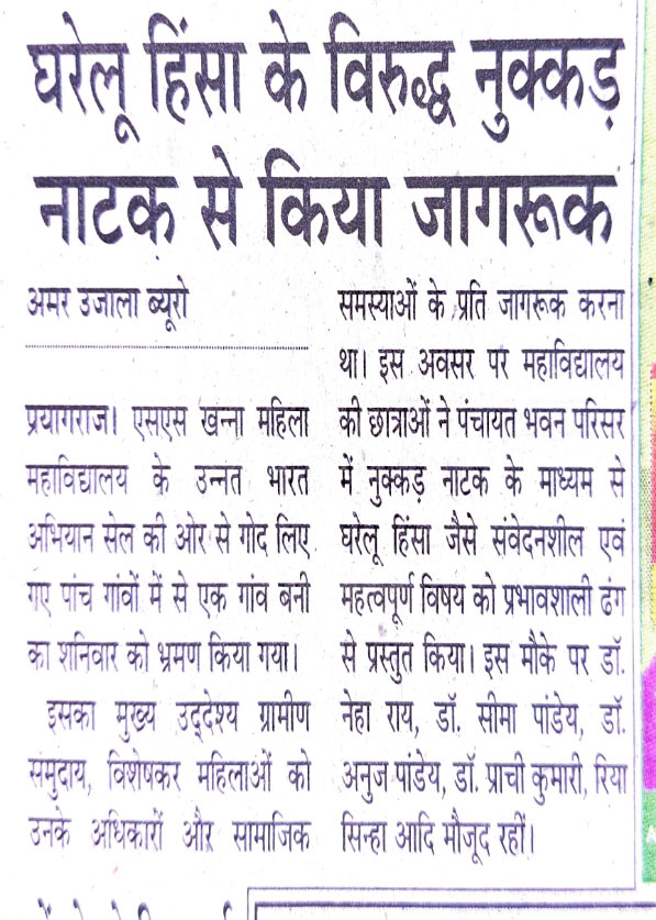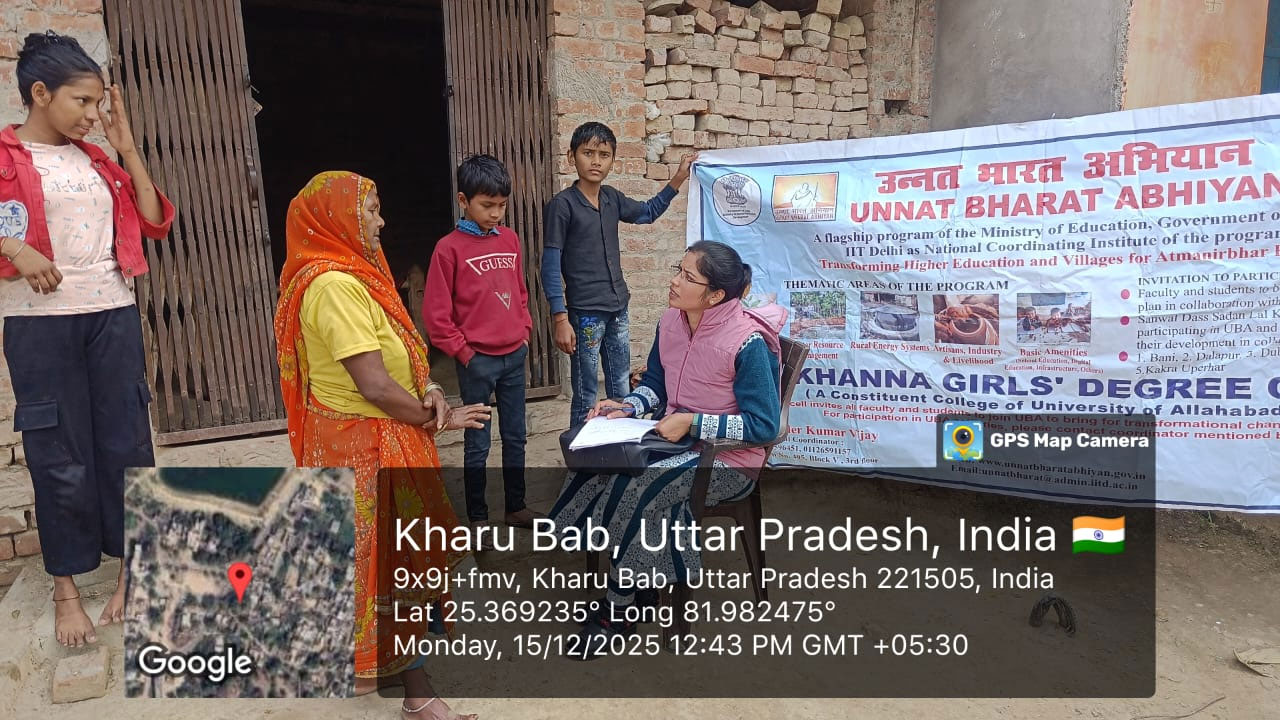 As per the Guideline of UGC, college registered as Participating Institute (PIs) under the Unnat Bharat Abhiyan (UBA) in the session 2025-26. The college Adopted five villages of the Bahadurpur block, Jhusi, Prayagraj. The details of these adopted villages are given below: